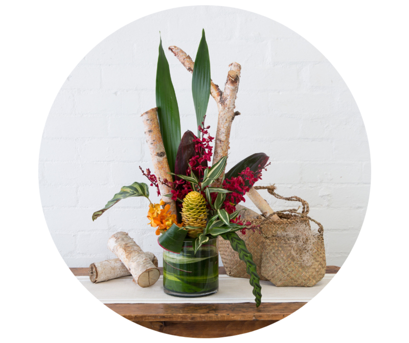 Often seen in corporate office or home settings, this spectacular arrangement teaches you how to work with standout tropicals and create a linear design, emphasising negative space and natural lines.